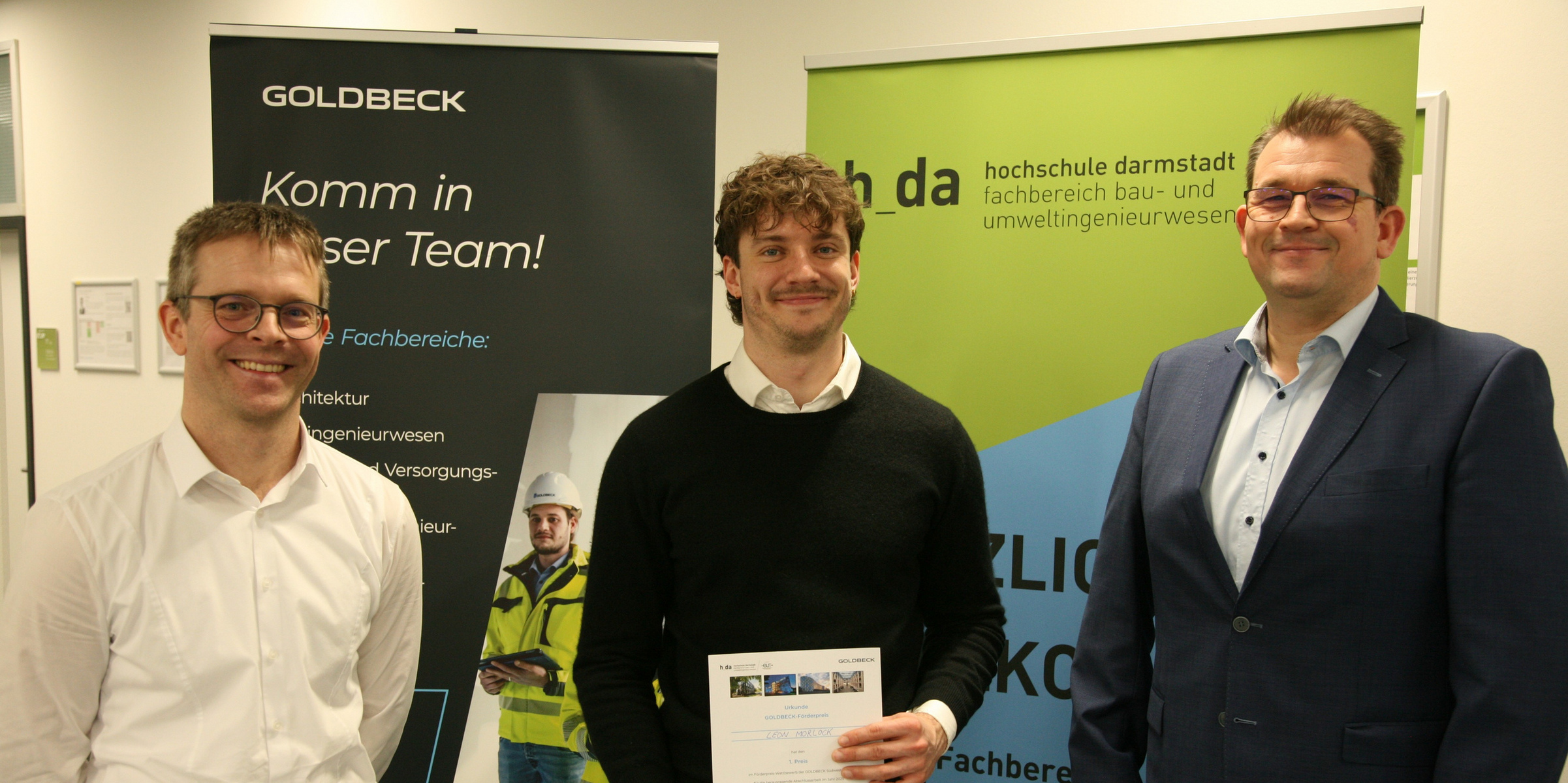 Die Entscheidung fiel der Jury nicht leicht, da alle Einreichungen hervorragend waren. Schließlich ging der erstmals vergebene Goldbeck-Förderpreis an Leon Morlock, Master-Absolvent im Studiengang Bauingenieurwesen an der h_da.