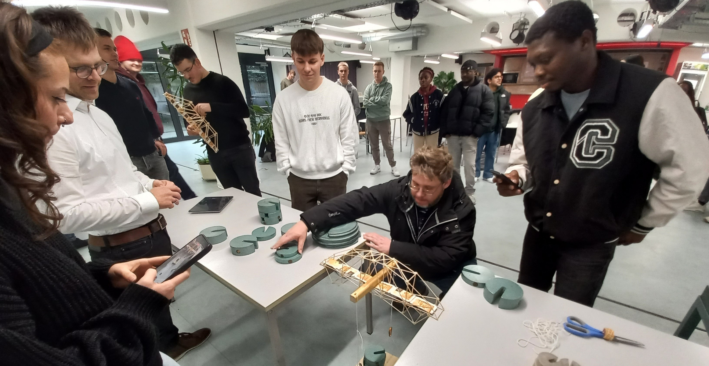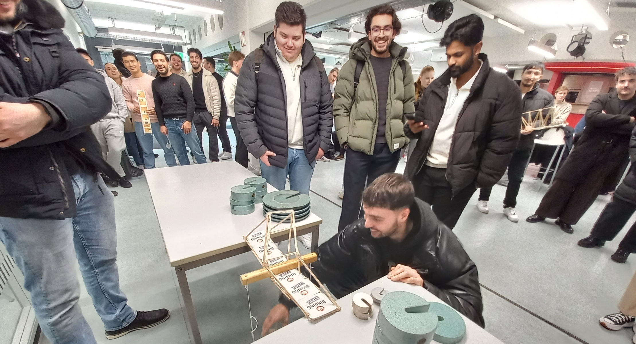 Am Dienstag, den 27.01.26 war es dann endlich soweit und die Studierenden konnten Ihre Brückenkonstruktionen bis zum Bruch belasten. Dies lieferte spannende Erkenntnisse zu Versagensarten – auch wenn es bei der ein oder anderen detailgetreuen Konstruktion fast etwas schade war, diese bis zum Bruch zu beanspruchen.