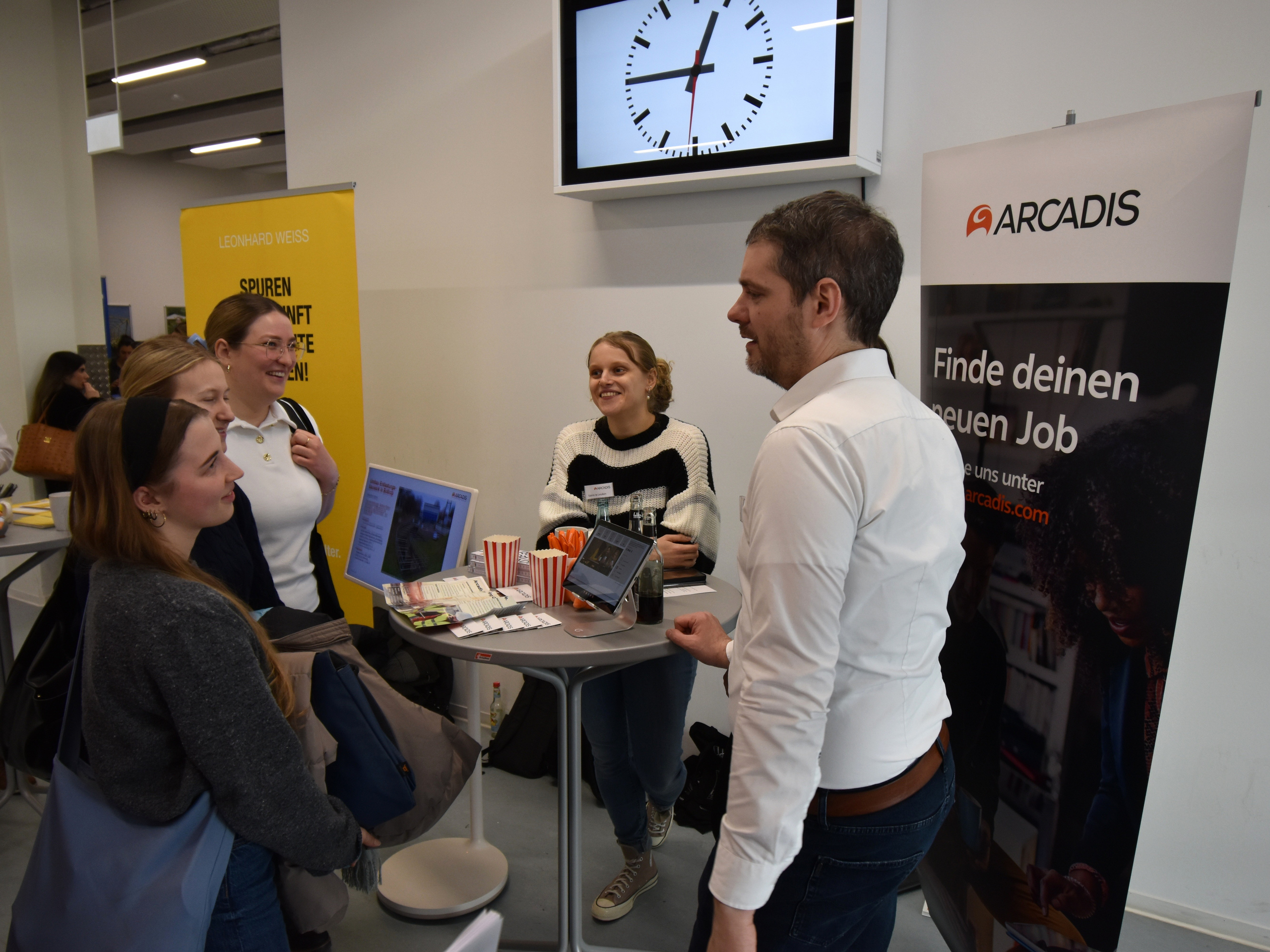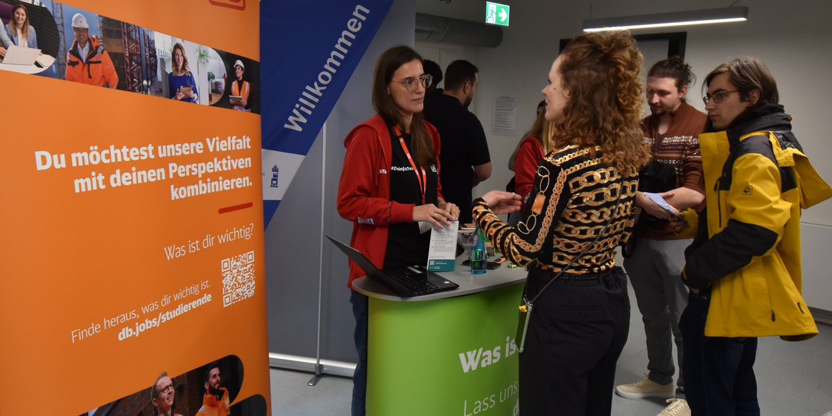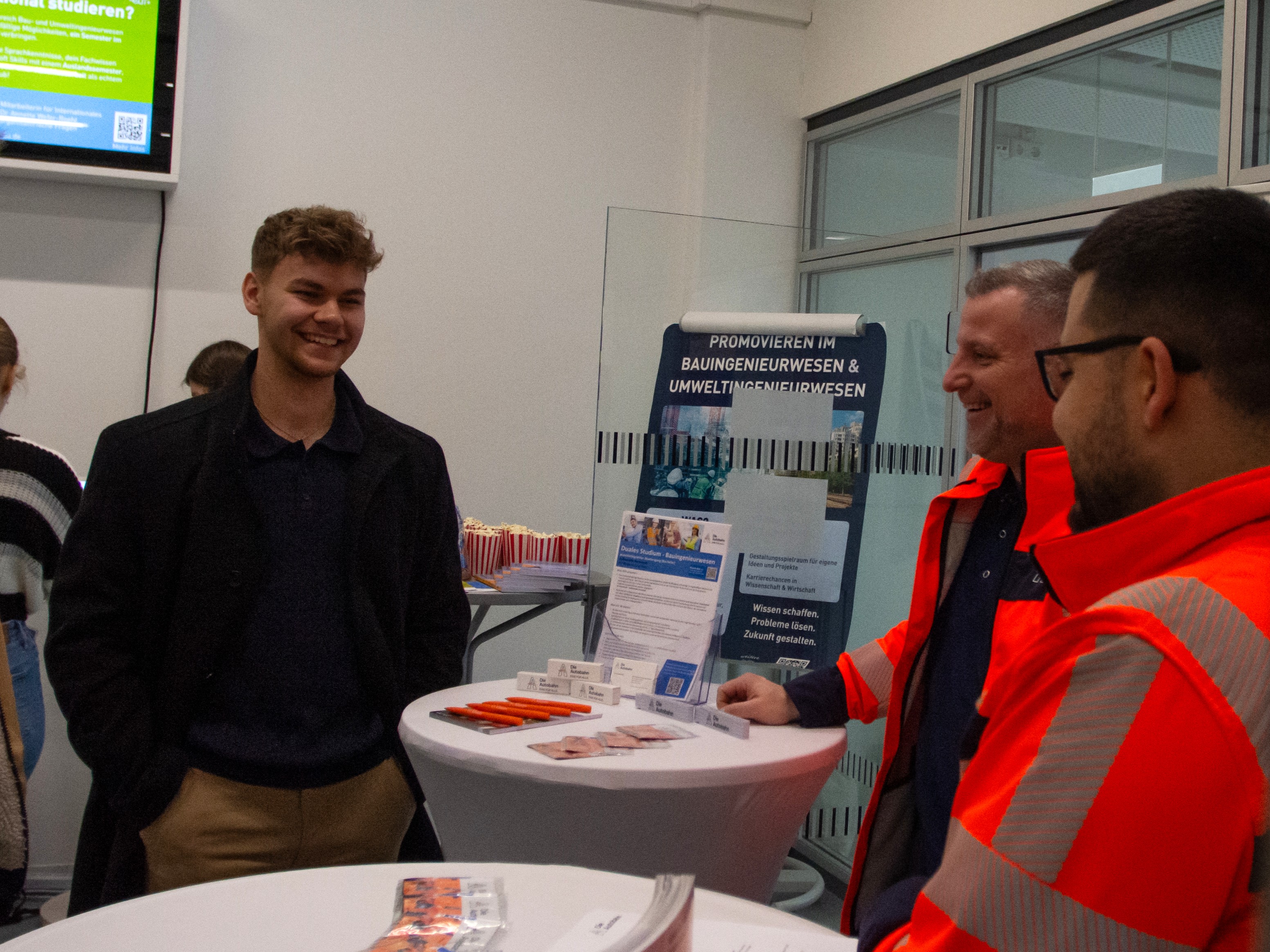 Die Veranstaltung fand erstmals auf zwei Ebenen im Gebäude A12 statt und bot damit noch mehr Raum für persönliche Gespräche und die gezielte Vernetzung zwischen Studierenden, Praxis und Hochschule. In entspannter Atmosphäre nutzten die Studierenden die Gelegenheit, sich direkt mit den Personal- und Fachverantwortlichen aus Unternehmen und Behörden auszutauschen und sich über Praktika, Werkstudierendentätigkeiten, duale Studienangebote sowie den Berufseinstieg zu informieren.