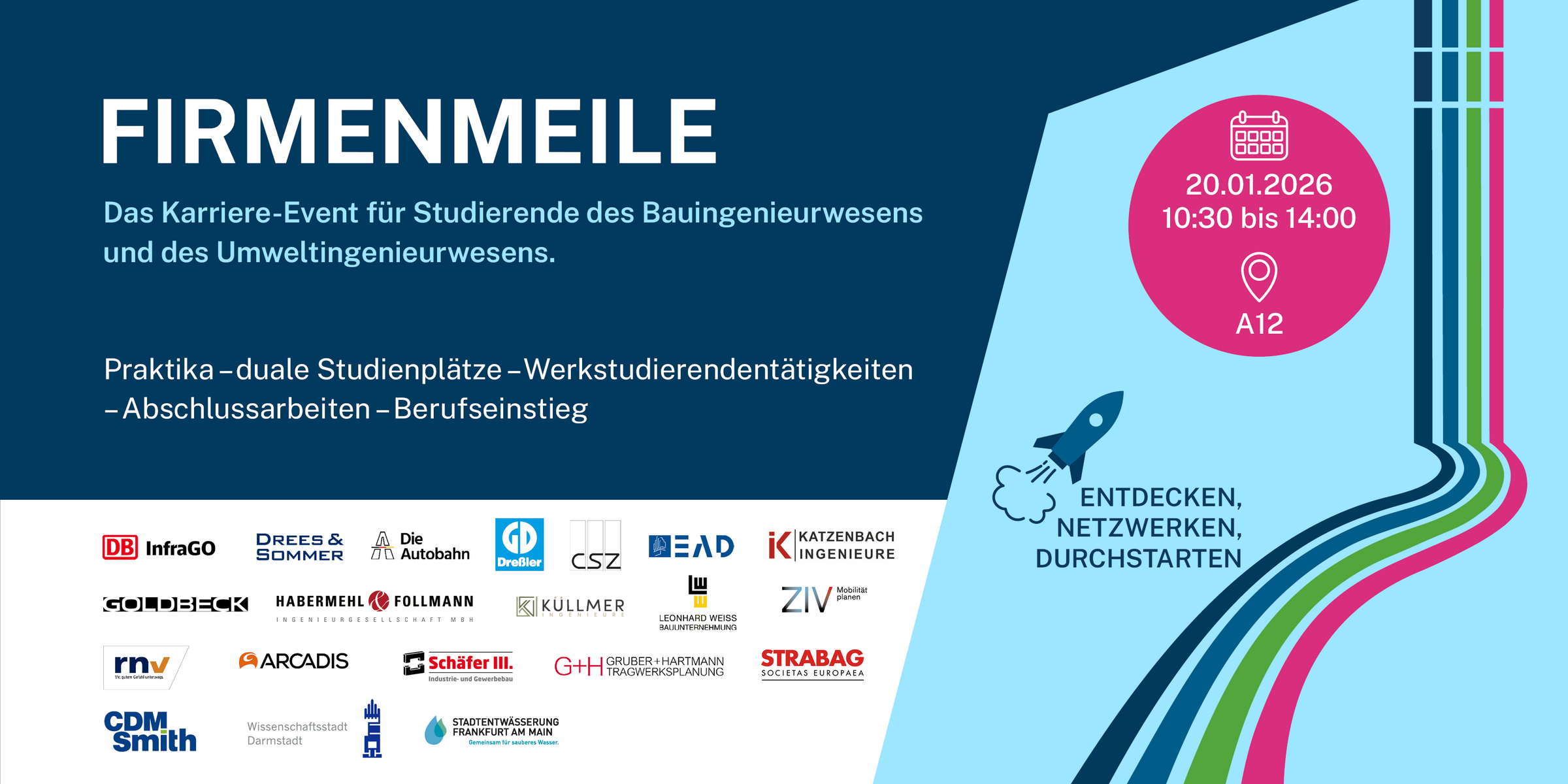 Die dritte Firmenmeile des Fachbereichs Bau- und Umweltingenieurwesen (FB BU) der Hochschule Darmstadt am 20. Januar 2026 war erneut ein voller Erfolg. Mit knapp 400 Teilnehmenden – Studierenden, Ausstellern sowie Mitarbeitenden – bestätigte sich das Karriereformat als passgenaue Plattform für Austausch, Vernetzung und Nachwuchsgewinnung in der Bau- und Umweltingenieurbranche im Kreis Darmstadt und Umgebung.