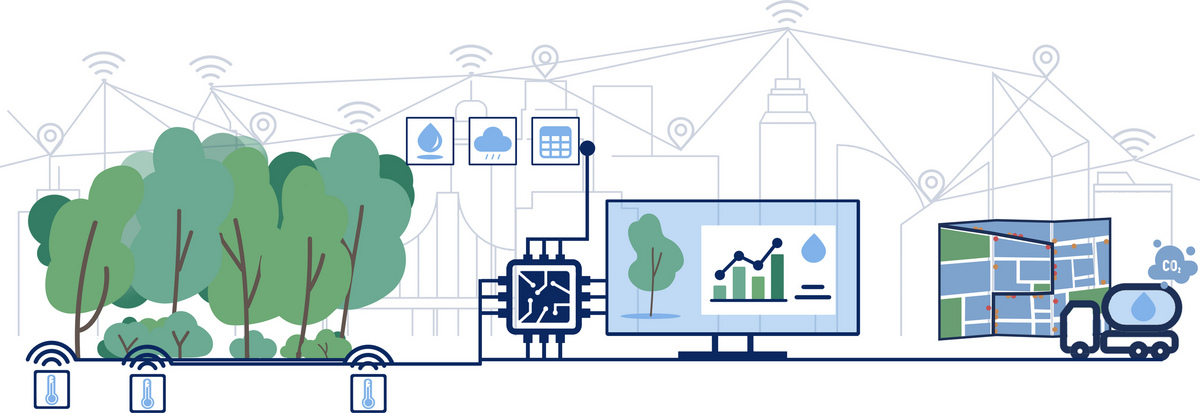 Das BlueGreenCity-KI-System nutzt Sensordaten, Stadtklimakarten und standortbezogene Informationen, um automatisierte Handlungsempfehlungen für das Grüninfrastruktur-Management zu generieren. Die KI hilft zukünftig die Pflege und Bewässerung von Stadtbäumen zu priorisieren, bei Entscheidungen für neue Standorte zu unterstützen, einen digitalen Zwilling der Wasserspeicherinfrastruktur zu entwickeln und automatisierte Vorhersagen für individuelle Bewässerungsmengen jedes Stadtbaums zu ermöglichen. Die intelligente Integration alternativer Wasserquellen ermöglicht es uns, Regenwasser und aufbereitetes Abwasser optimal zu nutzen und dabei den Trinkwasserverbrauch erheblich zu reduzieren. Das System verspricht bedeutende Umweltvorteile durch Reduktion von Treibhausgasemissionen, Verbesserung der CO₂-Speicherkapazität und Integration alternativer Wasserressourcen.